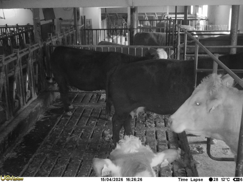 Kukameraet kom inn i fjøset då kyrne flytta inn i november 2025. Og kjem ut att på beite i april eller mai.