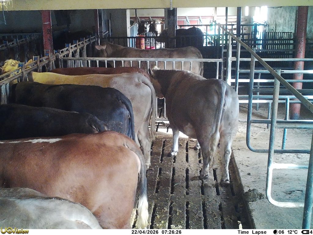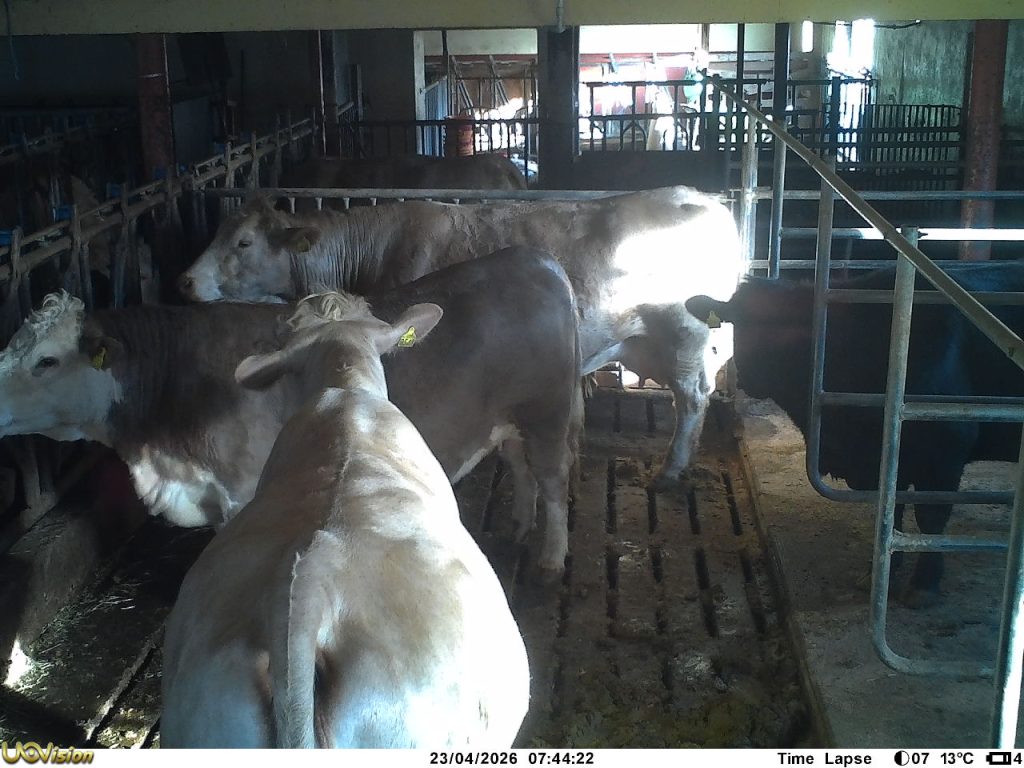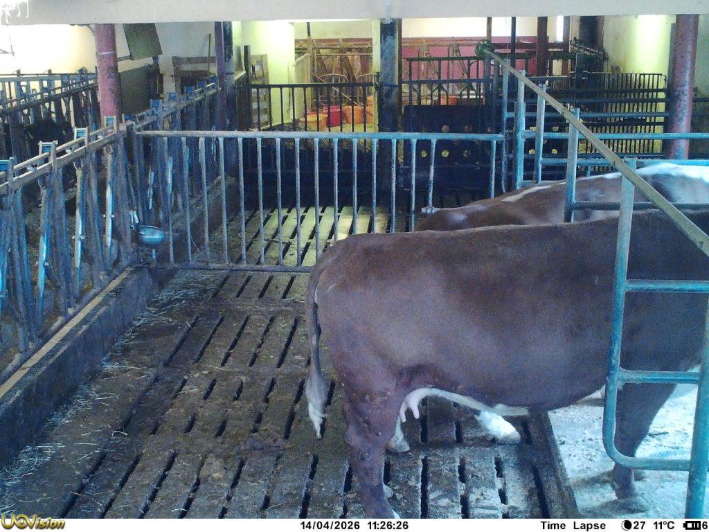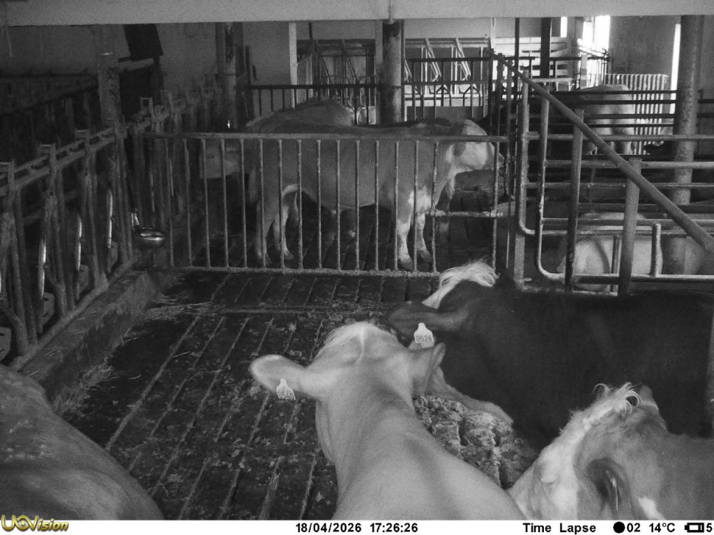 Kukameraet kom inn i fjøset då kyrne flytta inn i november 2025. Og kjem ut att på beite i april eller mai.